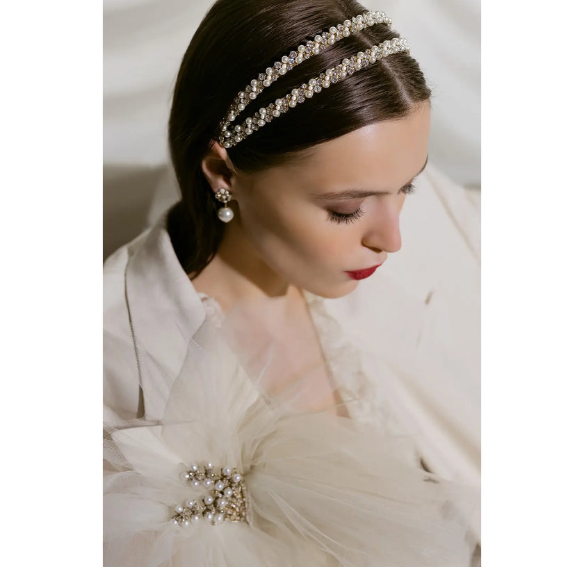 Your headpiece or accessory includes a soft luscious grey Maria Elena pouch. We highly recommend storing your beautiful piece in the pouch and then placing it in the luminous white Maria Elena box for safekeeping. We highly recommend avoiding any contact with hairspray, perfume, water, and other chemicals.