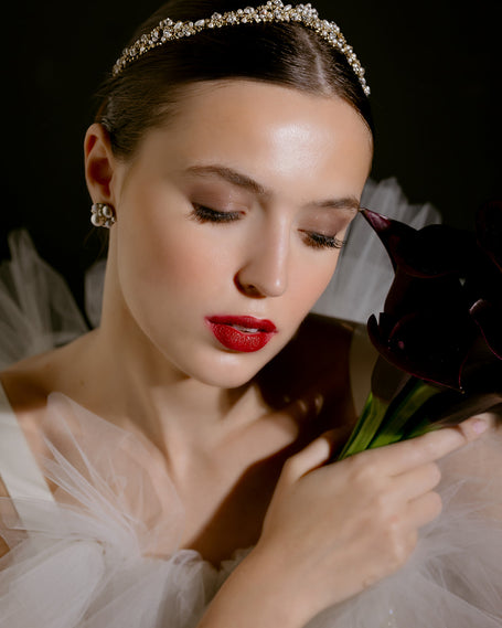 Your headpiece or accessory includes a soft luscious grey Maria Elena pouch. We highly recommend storing your beautiful piece in the pouch and then placing it in the luminous white Maria Elena box for safekeeping. We highly recommend avoiding any contact with hairspray, perfume, water, and other chemicals.