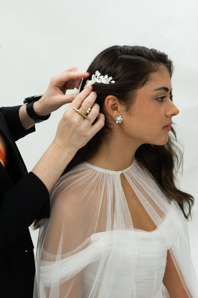 A Defining Moment: Marc Anthony in Maria Elena True style is found in the details, and Marc Anthony captured that essence on the cover of ¡Hola! magazine. He was styled by Irma Martinez who chose a Maria Elena Dali Lapel Pin, a subtle yet intentional detail that completed the look with quiet distinction. Set against the strength of his tailoring and the confidence he carries so naturally, the pin became an expression of personal style. For Maria Elena, this moment holds special meaning. Marc Anthony’s influence extends far beyond music, touching culture, heritage, and identity. This choice reflects a shared philosophy that true elegance is enduring, personal, and legacy. The lapel pin added depth and character, proving that the smallest details often leave the most lasting impression. The Craft Behind the Dali Lapel Pin Every Maria Elena lapel pin is designed and handcrafted in our Miami studio with the same level of artistry as our bridal headpieces. Sculptural in form and rich in detail, each piece is created with balance and intention, allowing it to complement the wearer rather than compete with the look. The Dali Lapel Pin is embellished with ivory mother of pearl and onyx stones, in checkers and vertical lines patterns with black crystals. Materials are selected for their ability to age beautifully, ensuring that each pin feels relevant today while carrying meaning for years to come. These are not accessories made for a single moment, but designed to mark milestones, achievements, and personal style with refinement. Beyond Bridal: Heirloom Design Redefined Marc Anthony’s ¡Hola! cover reflects a broader evolution in how heirloom accessories are worn and understood. Maria Elena designs are no longer confined to bridal moments alone. They belong wherever confidence, and legacy intersect. When craftsmanship is rooted in intention and heart, it transcends fashion and becomes part of a lasting story. Similar Pin Designs to Explore Maria Elena Headpieces offers several lapel pins that evoke the elegance, surrealist, and modern as the Dali Lapel Pin. Each design is crafted with the same dedication to detail and heirloom beauty. Salvador Lapel Pin Pays homage to the legendary artist Dalí and the exquisite allure of surrealism. It is adorned with white mother-of-pearl and onyx checkerboard accents and black crystals. Elwood Lapel Pin Exemplifies the beauty and elegance found in simplicity. Its graceful swirl design creates a striking and modern accessory, enhanced by a combination of mother-of-pearl and onyx elements. Lee Lapel Pin A modern dream with surrealist tones. Simulating a flower adorned with ivory mother of pearl and onyx-stripped stones.