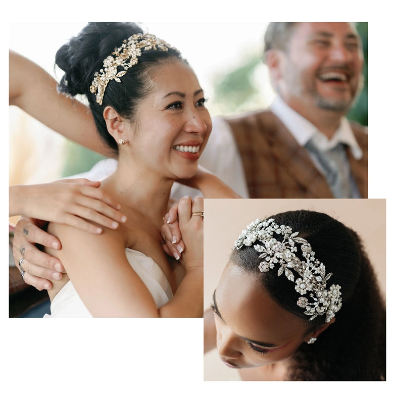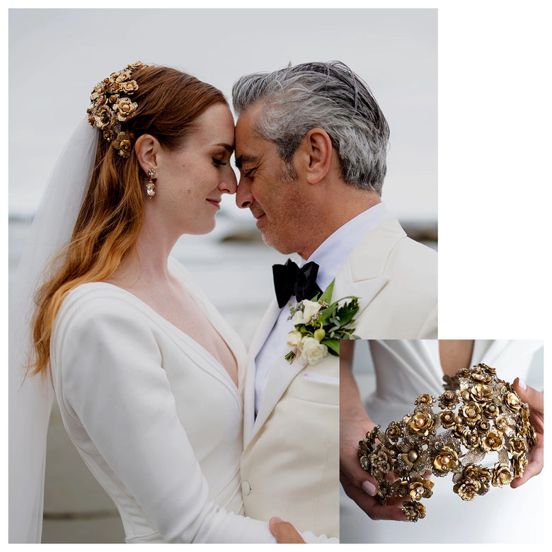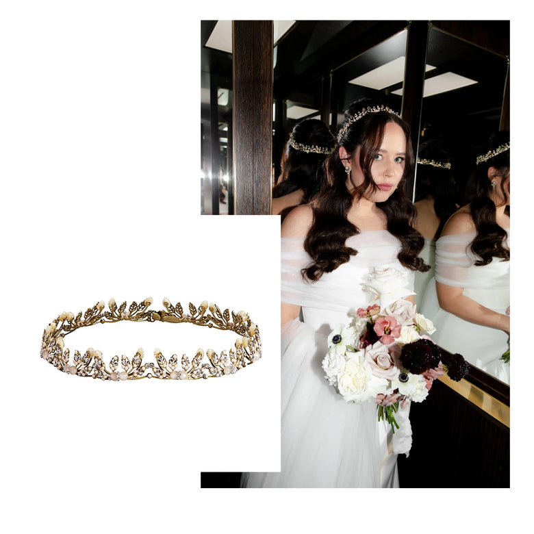 "I chose a Maria Elena Headpiece for my wedding so I can pass it down to my daughter Noa one day, since my dress likely won’t fit her."