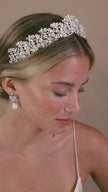 The Claridad Crown is a luminous statement of purity and grace. Handcrafted with clusters of pearls and crystals arranged in a soft floral silhouette, this design radiates a natural glow that feels both delicate and refined. Each detail captures the light beautifully, creating a timeless look that complements any bridal style.