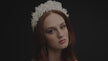 As you adorn yourself with our feminine and sophisticated 'Embrace' headband on your special day, you'll feel gracefully enveloped in the warmth of love's embrace. Our headband is created with white chiffon flowers, iridescent white pearls, small white pearls, and mother-of-pearl flowers and navettes.