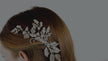 The Emmy wedding comb combines clear & ivory cream ultra-precise, man-made crystals with golden shadow crystal rocks, and ivory pearl seed bead flowers.