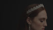 The Enchanted crown is infused with delicate whimsy and feminine delight. It is adorned with clear and powder white crystals, petite ivory flowers and mother of pearl navettes.