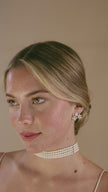 The Esencia Choker captures the soul of refined elegance. Designed with a multisize cluster of pearls and clear crystals, this luminous piece radiates from every angle. Its structured pearl collar gracefully transitions into cascading strands that trail down the back — a breathtaking detail symbolizing the flow of connection and devotion. Both modern and eternal, Esencia is an unforgettable statement for the bride whose beauty feels effortless yet profound.