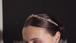 Francesca graces the bride with a regal yet ethereal presence, it is adorned with clear crystals, petite pearl cabouchons, and off-white pearl navettes.