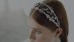 The Kaya wedding headband combines clear ultra-precise, man-made crystals, clear crystal fabric, off-white man-made cabochons of the finest quality, and pearl chains.
