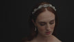 Luminous is a testament to the radiant realm of being in love. A crown that captivates with its celestial beauty and ethereal glow. It is adorned clear and light blush crystals, petite gray pearls, and mother of pearl flowers.