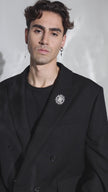 Our lapel pin is a jeweled masterpiece with a sophisticated shine. It is embellished with clear crystals. Paired with matching Clinton Cuff Links.